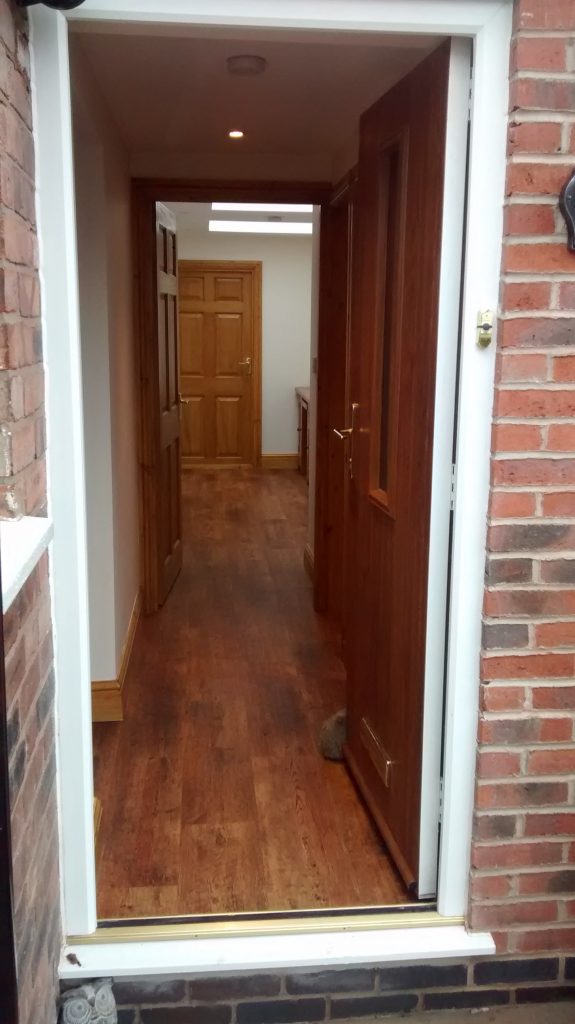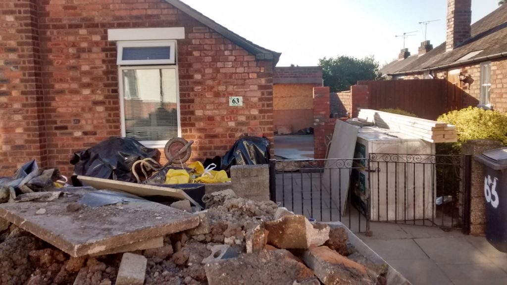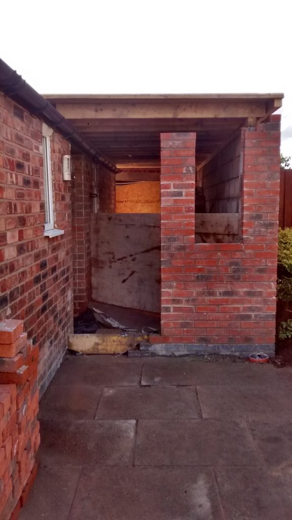 A single-storey extension was built onto the driveway, connecting the house to an external garage at the rear of the property.
